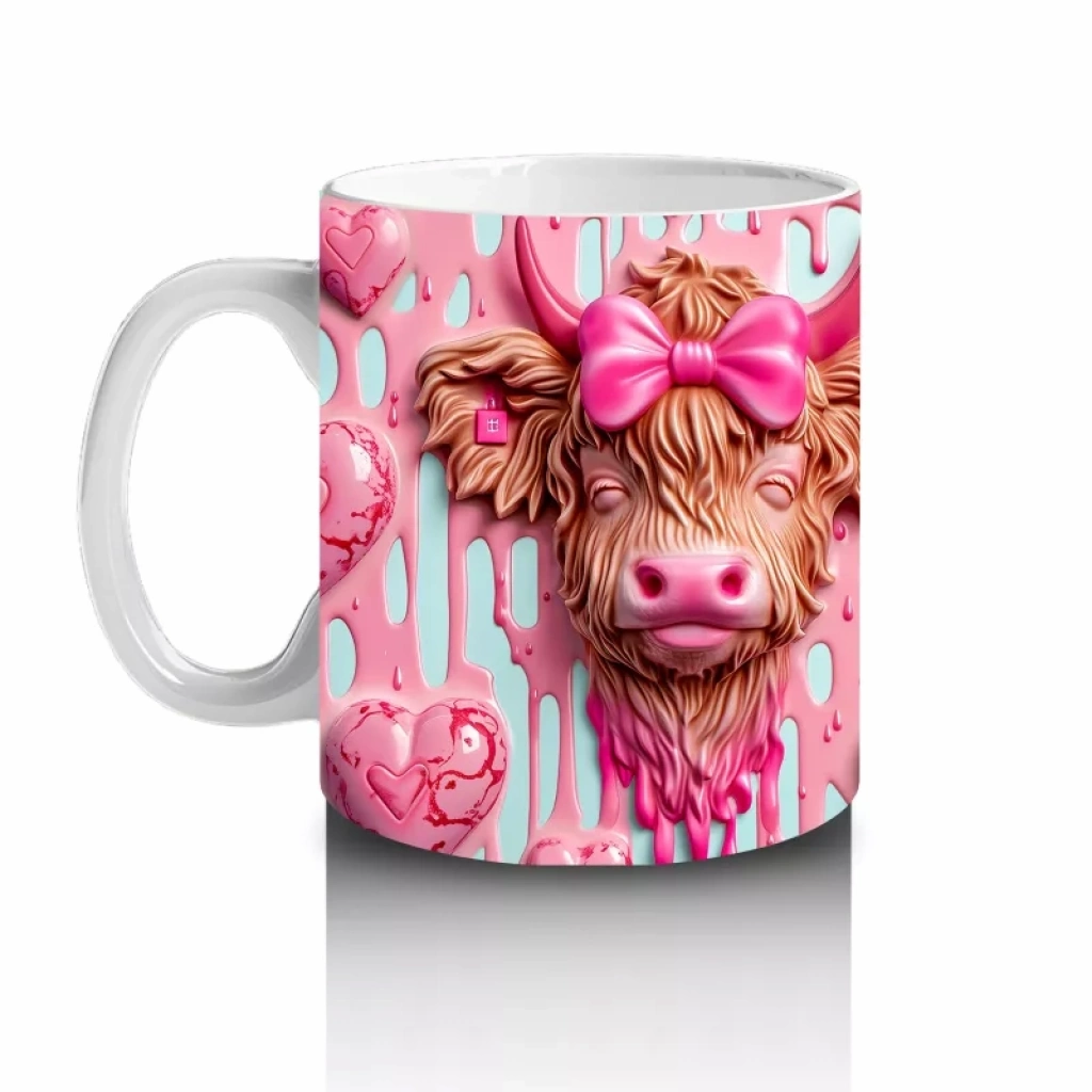 Pembe kurdeleleri ve kalpli balonlarıyla dikkat çeken buzağı çifti, masumiyet ve sevgi temalı bir görsel sunuyor. Romantik ve neşeli detayları bir arada arayanlar için harika bir hediye seçeneği.