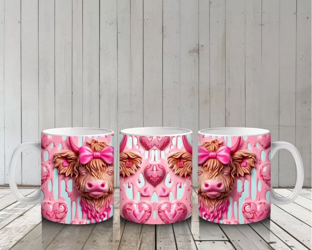 Kalpli Balon Tutan Pembe Kurdeleli Buzağılar – Baskılı Kahve Kupası
