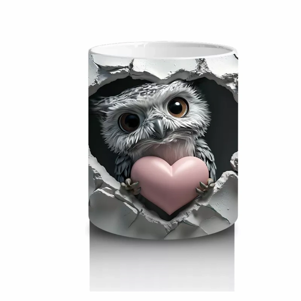 Çatlak duvarın içinden bakan bilge baykuş, kalp detaylarıyla duygusal bir dokunuş sunuyor. Hem gizemli hem sevimli bir atmosfer arayanlara özel.
