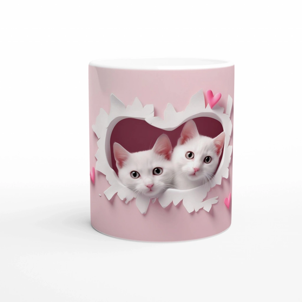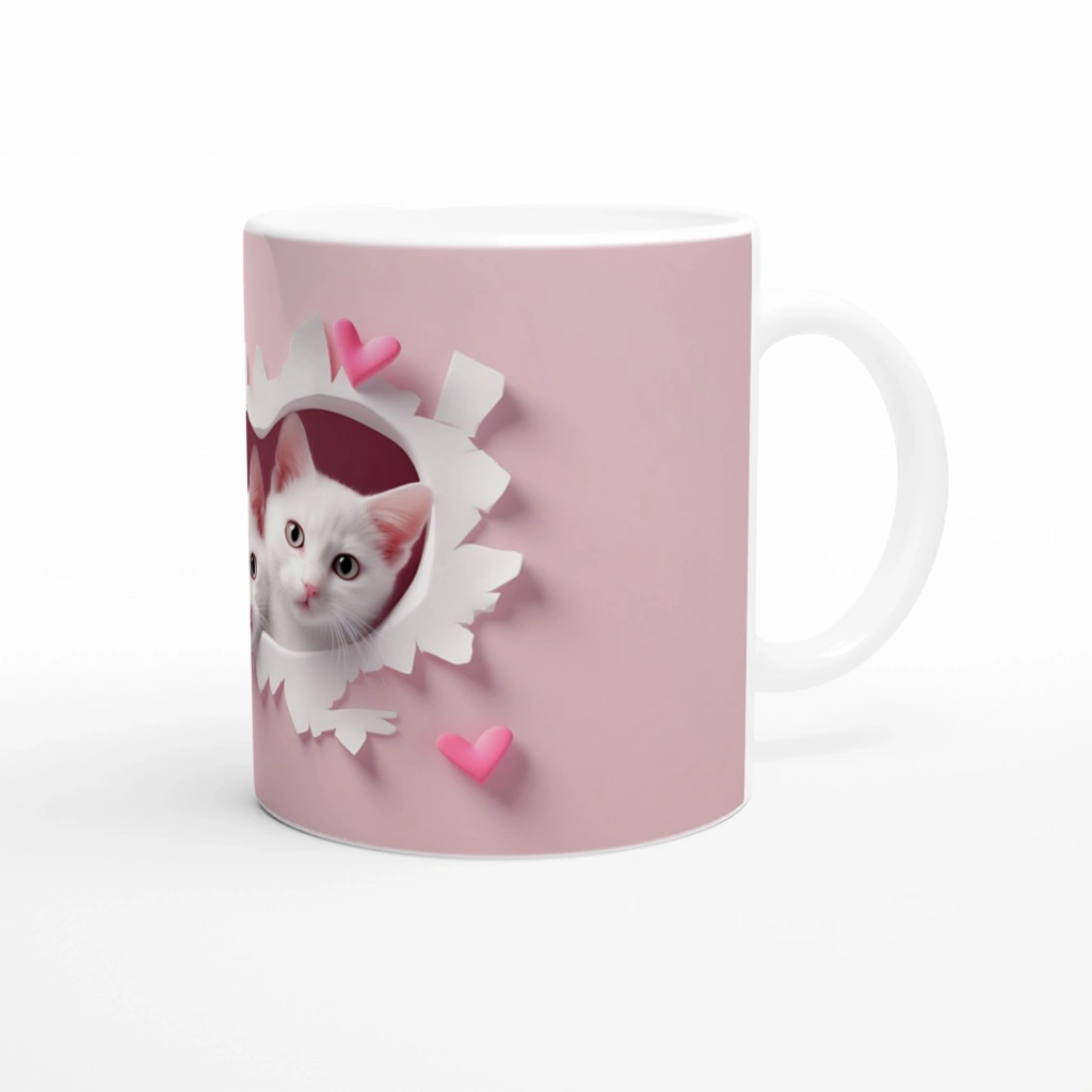 Kalpli Çatlak Duvardan Bakan İki Beyaz Kedi Temalı Baskılı Kupa Bardak