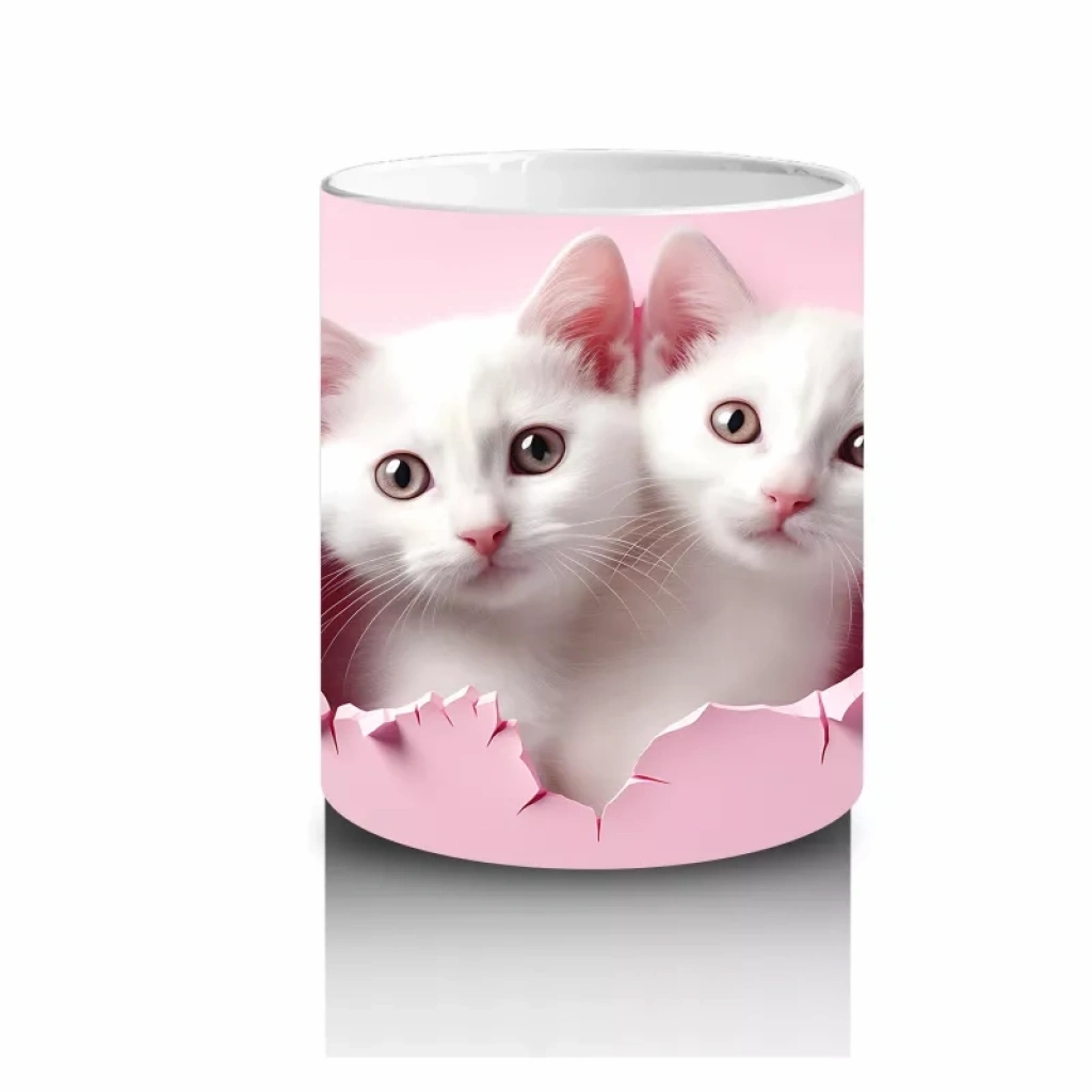 Kalp şeklindeki çatlak içinde yer alan beyaz kedicikler, aşkın en saf ve sevimli halini temsil ediyor. Romantik detayları sevenler için özel günlerde tercih edilebilecek anlamlı bir tasarım.