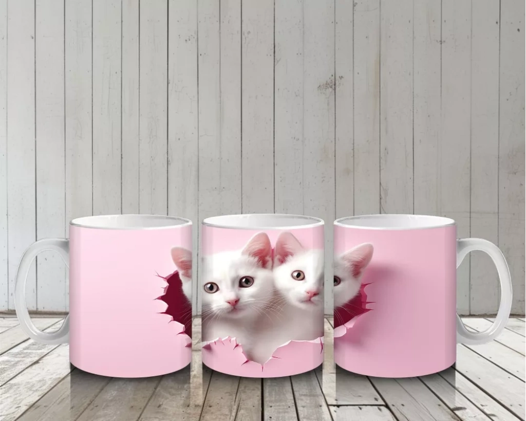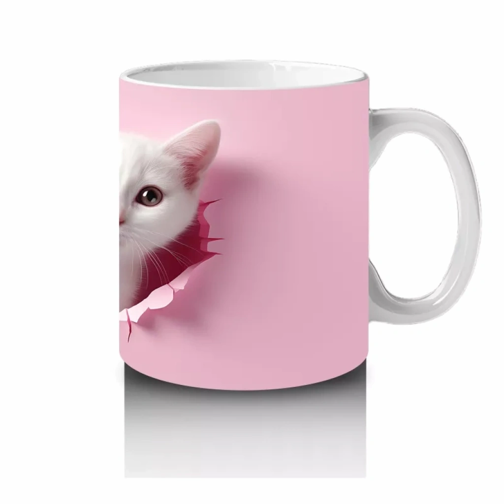 Kalpli Çatlakta Bakan Sevimli Beyaz Kedicikler – Baskılı Kahve Kupası