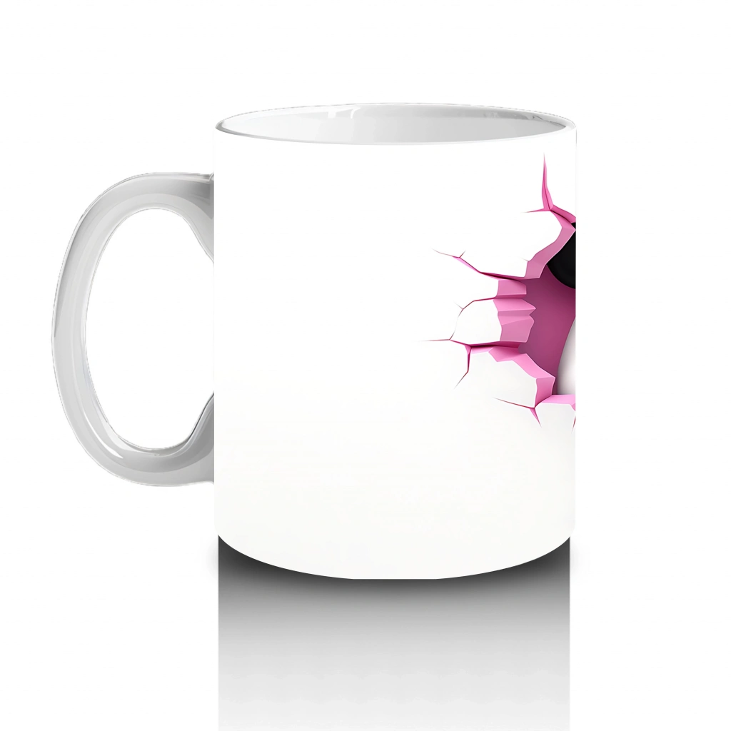 Tatlı bir panda, kalp şeklindeki çatlağın içinden size sevgiyle bakıyor. Sevimliliği ve huzur veren bakışıyla bu kupa, sıcak içeceklerinize mutluluk katacak.