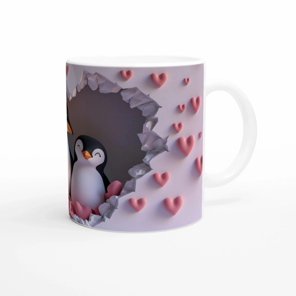 Kalpli Çatlaktan Bakan Penguenler Temalı Baskılı Kupa Bardak, pastel renkli kalplerle süslenmiş yumuşak bir kompozisyon sunarak hem romantik hem de eğlenceli bir tarz yakalıyor. Sevgi dolu hediye seçenekleri arasında öne çıkıyor.