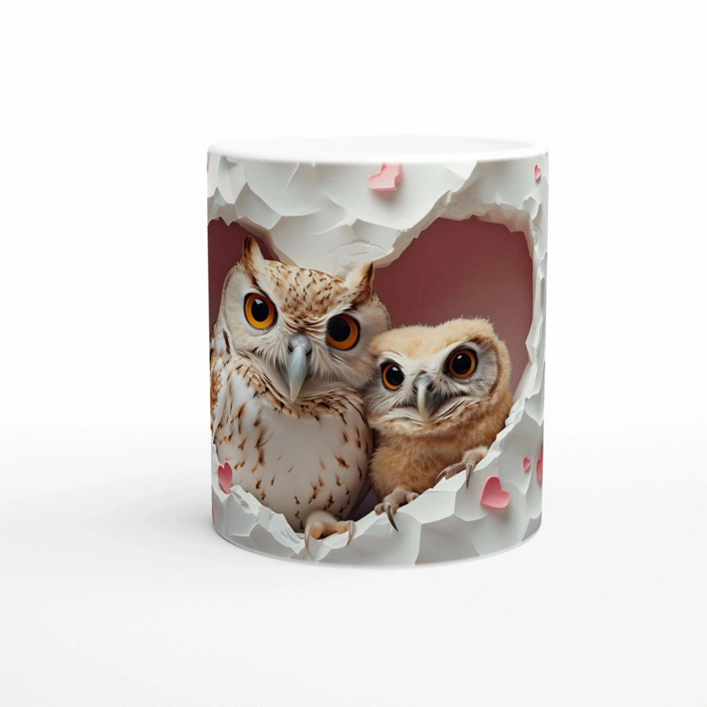 Sevimli bir yavru baykuş ile onu koruyan bir yetişkin baykuşun yer aldığı bu tasarım, kalp şeklinde delinmiş bir duvardan bakarken sıcak bir bağ hissi yaratıyor. Göz alıcı turuncu gözleri ve detaylı tüy yapısıyla doğaseverlere hitap eden eşsiz bir ürün.