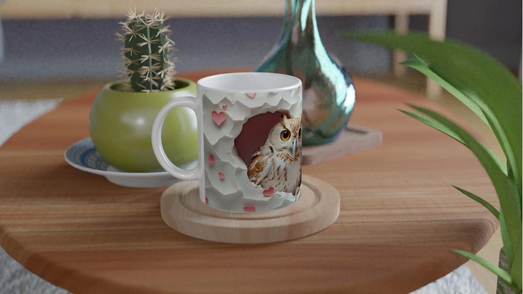 Kalpli Duvardan Bakan Baykuş Temalı Baskılı Kupa Bardak