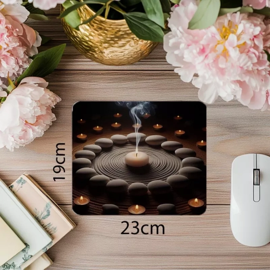Karanlık fon üzerinde yükselen zen tütsüsü detayıyla bu mouse pad, derinleşen odak ve meditasyon anları için ilham verici bir tasarım sunar.