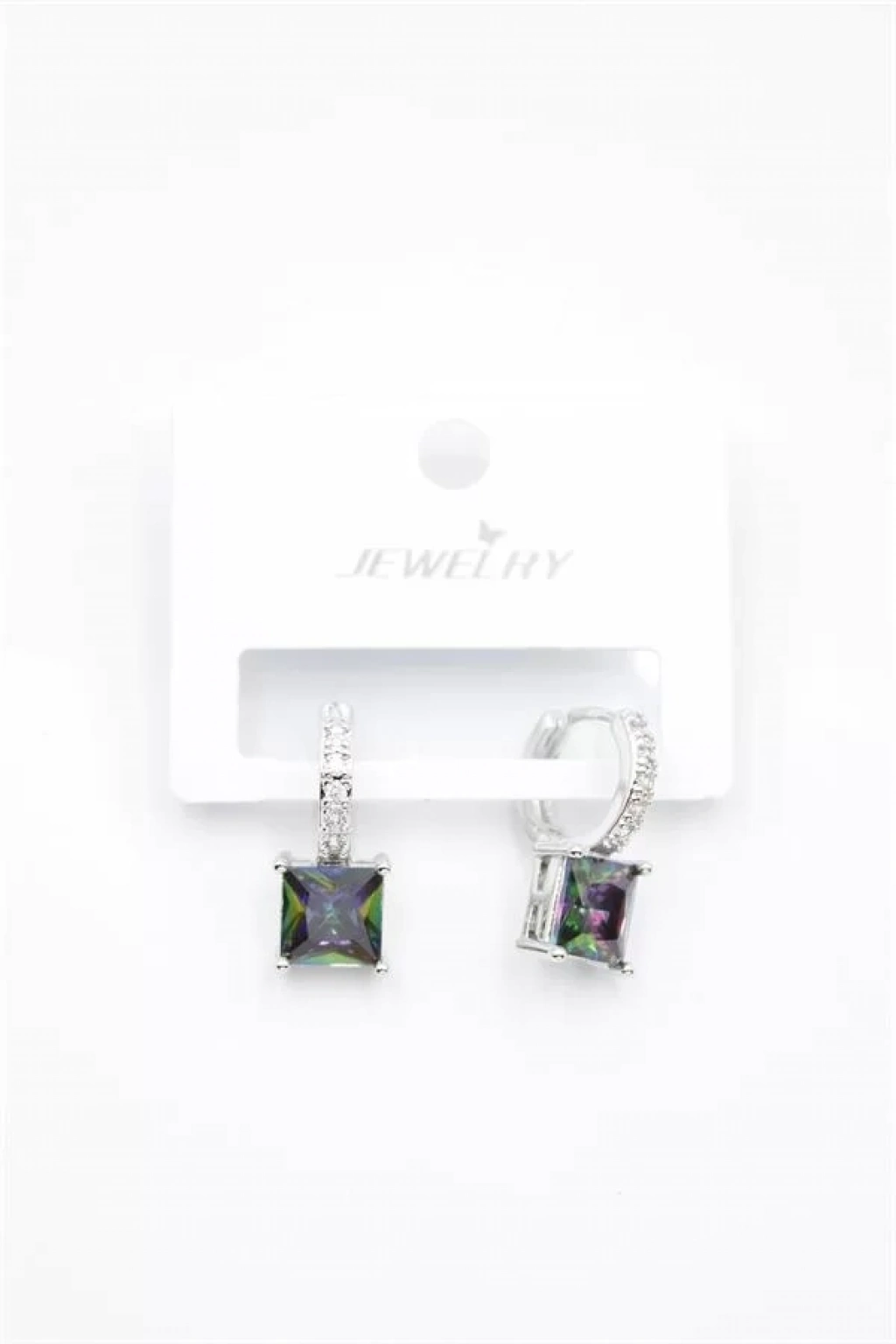 Kare Taşlı Küpe - Gümüş
