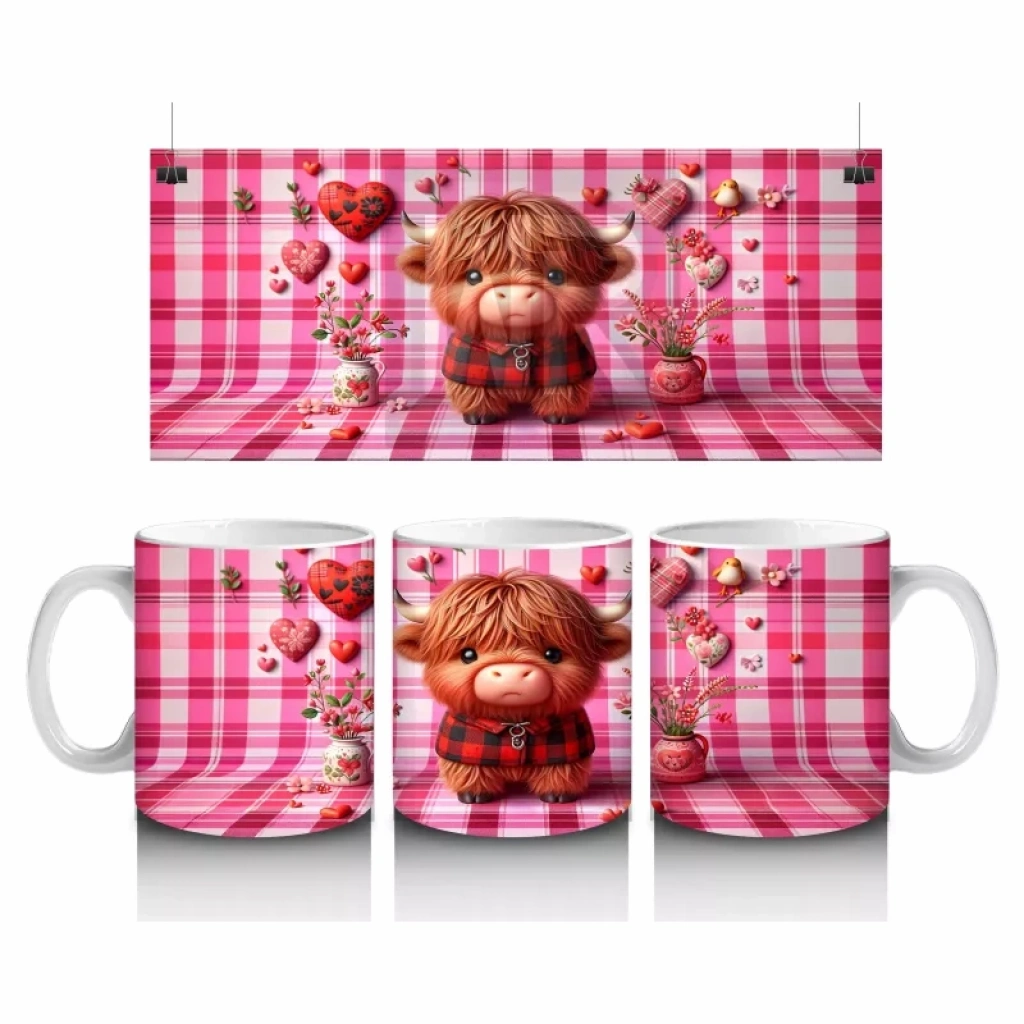 Kareli Pembe Fon ve Kalpli Buzağı – Baskılı Kupa Bardak