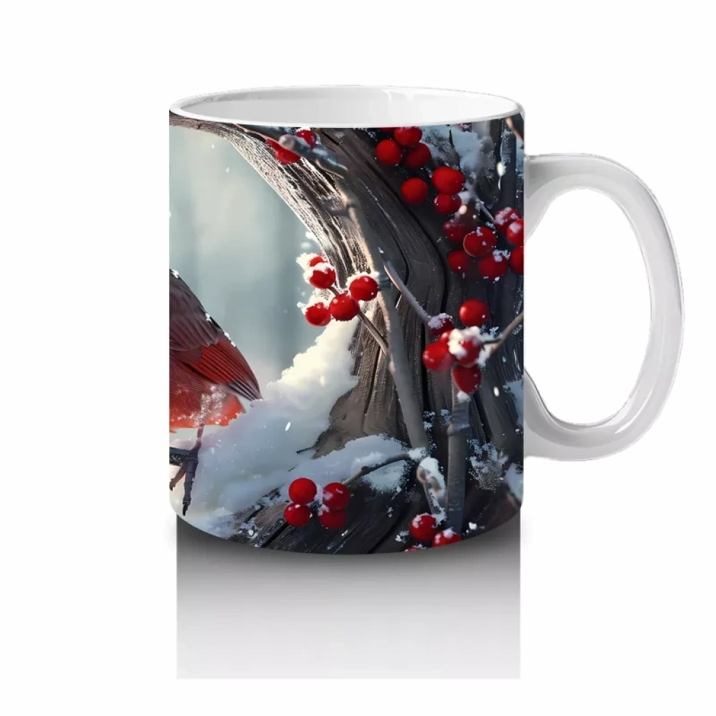 Karla Kaplı Dallarda Kırmızı Kardinal – Baskılı Kupa