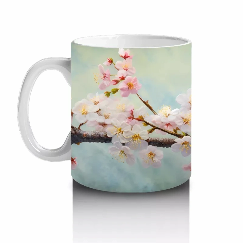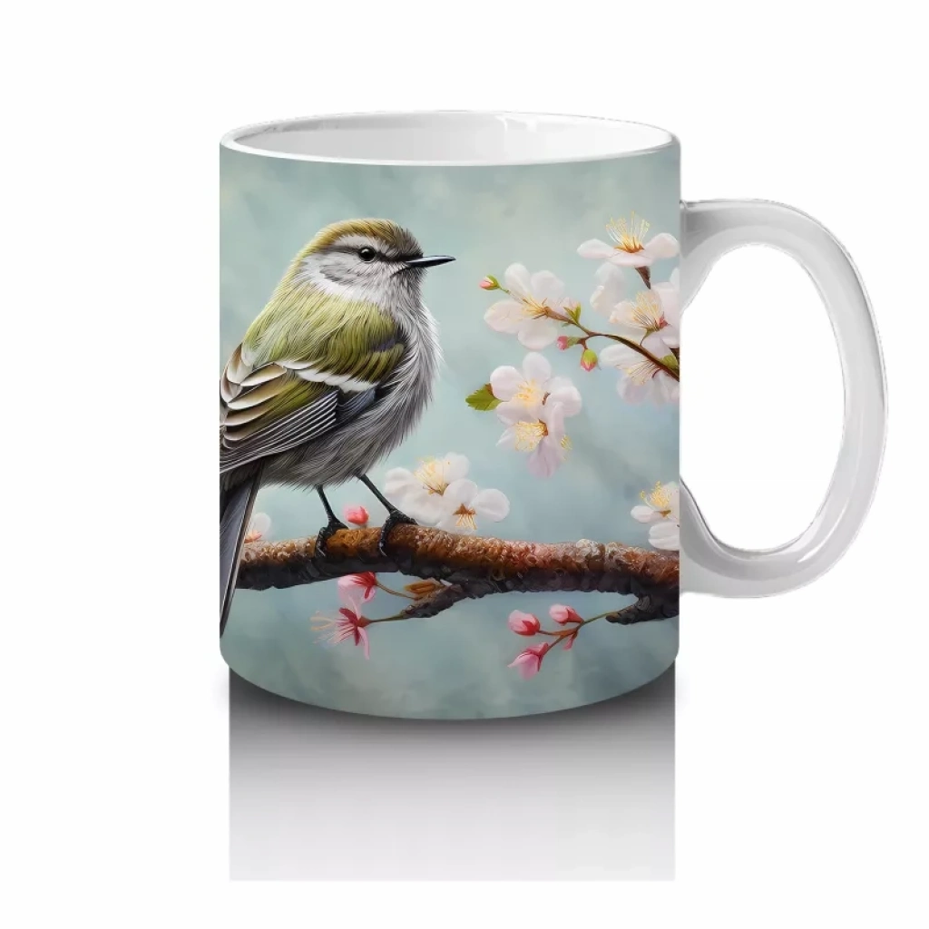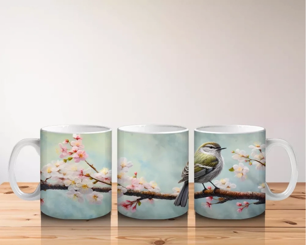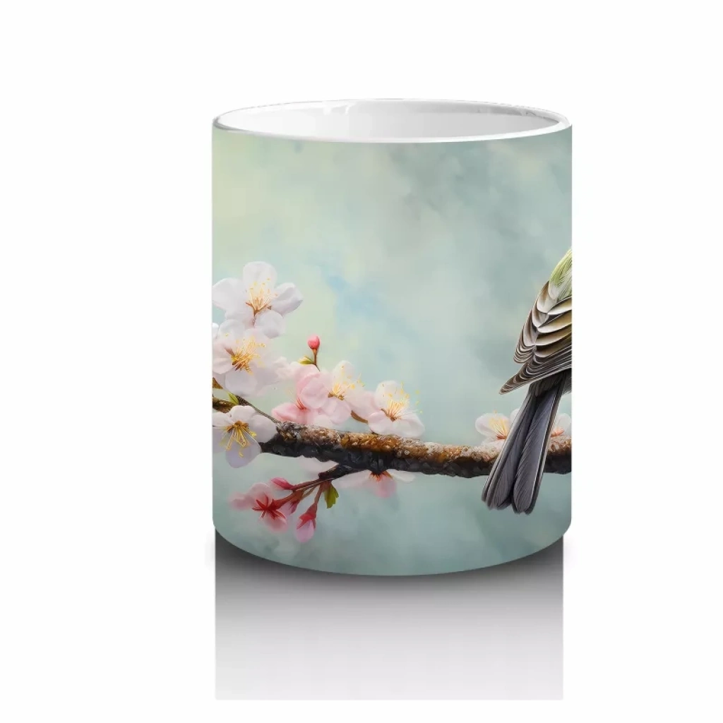 Kiraz Çiçekleri Arasında Kuş – Baskılı Kahve Kupası