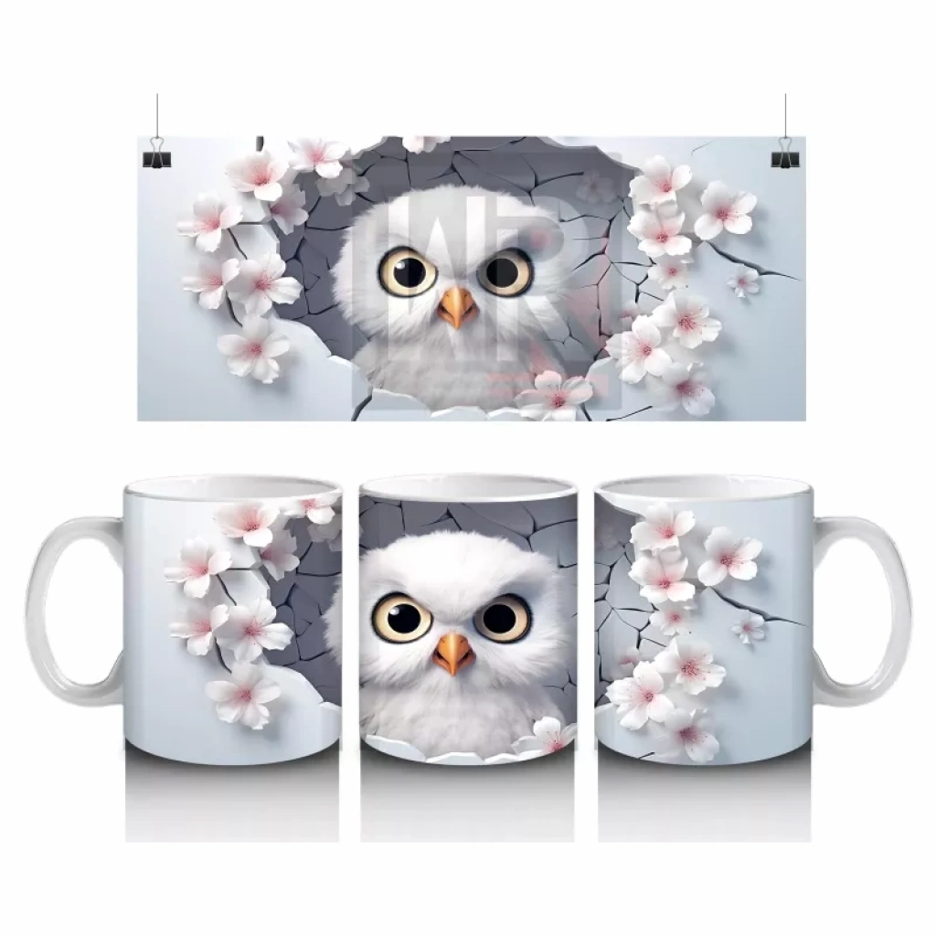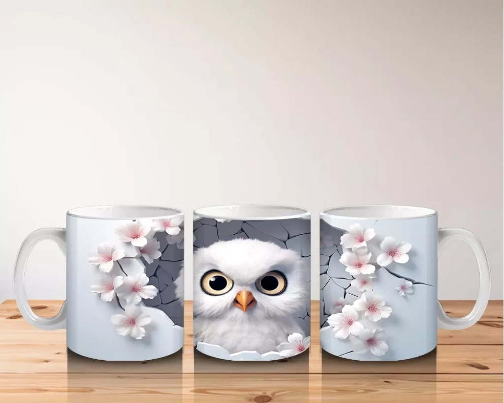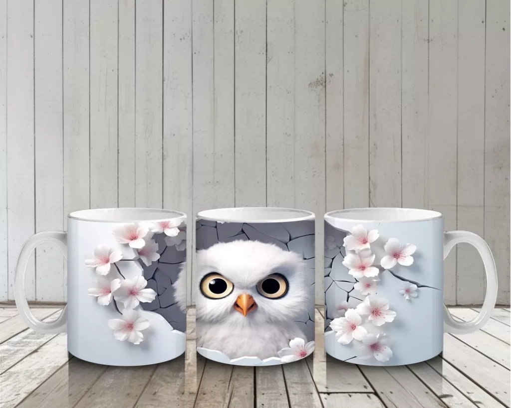 Kiraz Çiçekleri Arasında Minik Baykuş – Baskılı Kahve Kupası