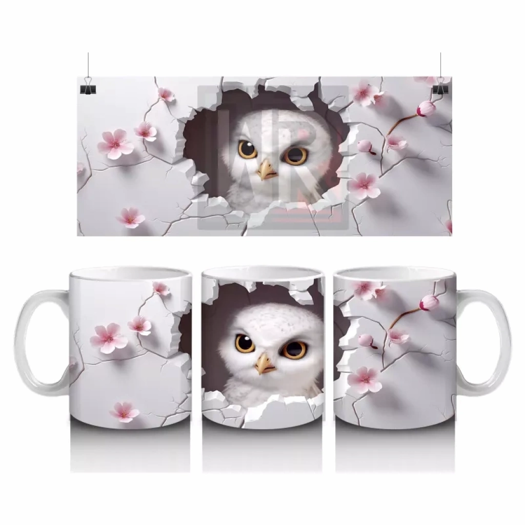 Kiraz çiçekleriyle çevrelenmiş baykuş figürü, doğa ve estetiği bir araya getiriyor. Canlı ve romantik tasarımlar arayanlar için özel bir alternatif.