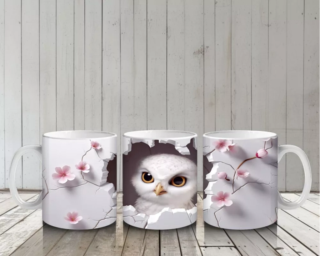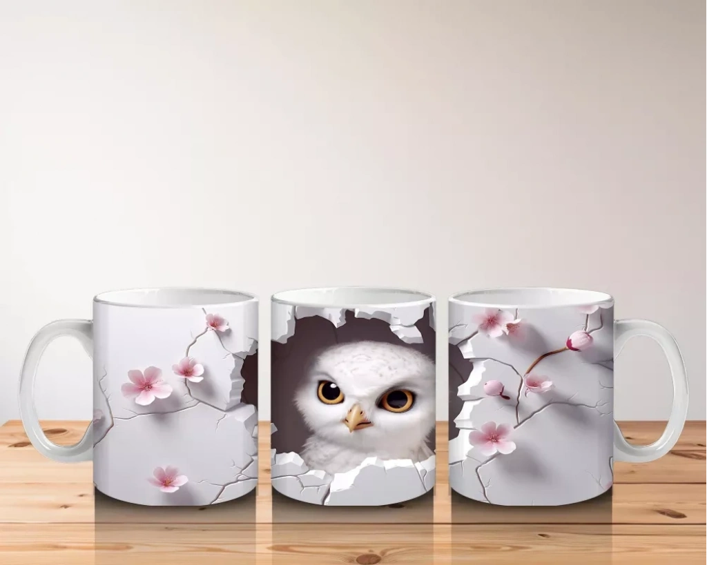 Kiraz Çiçekleriyle Çevrelenmiş Baykuş – Baskılı Kupa