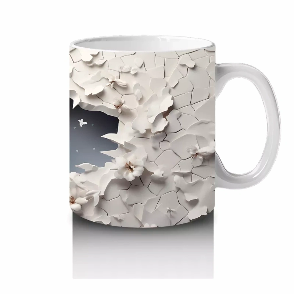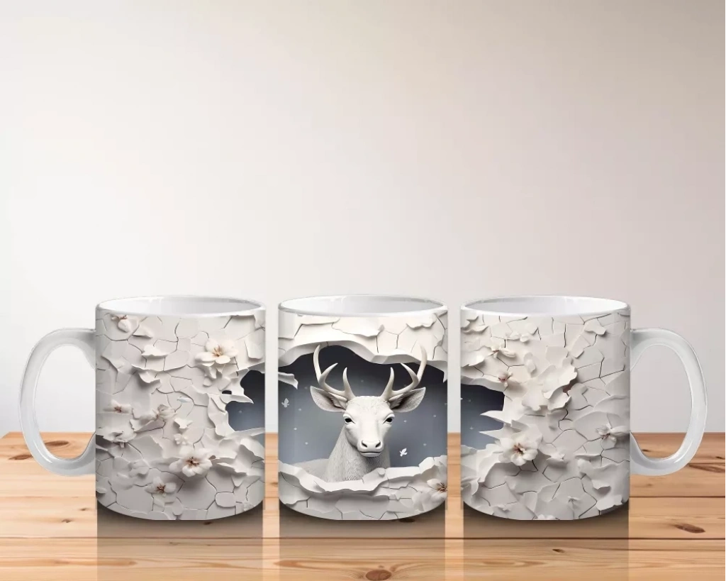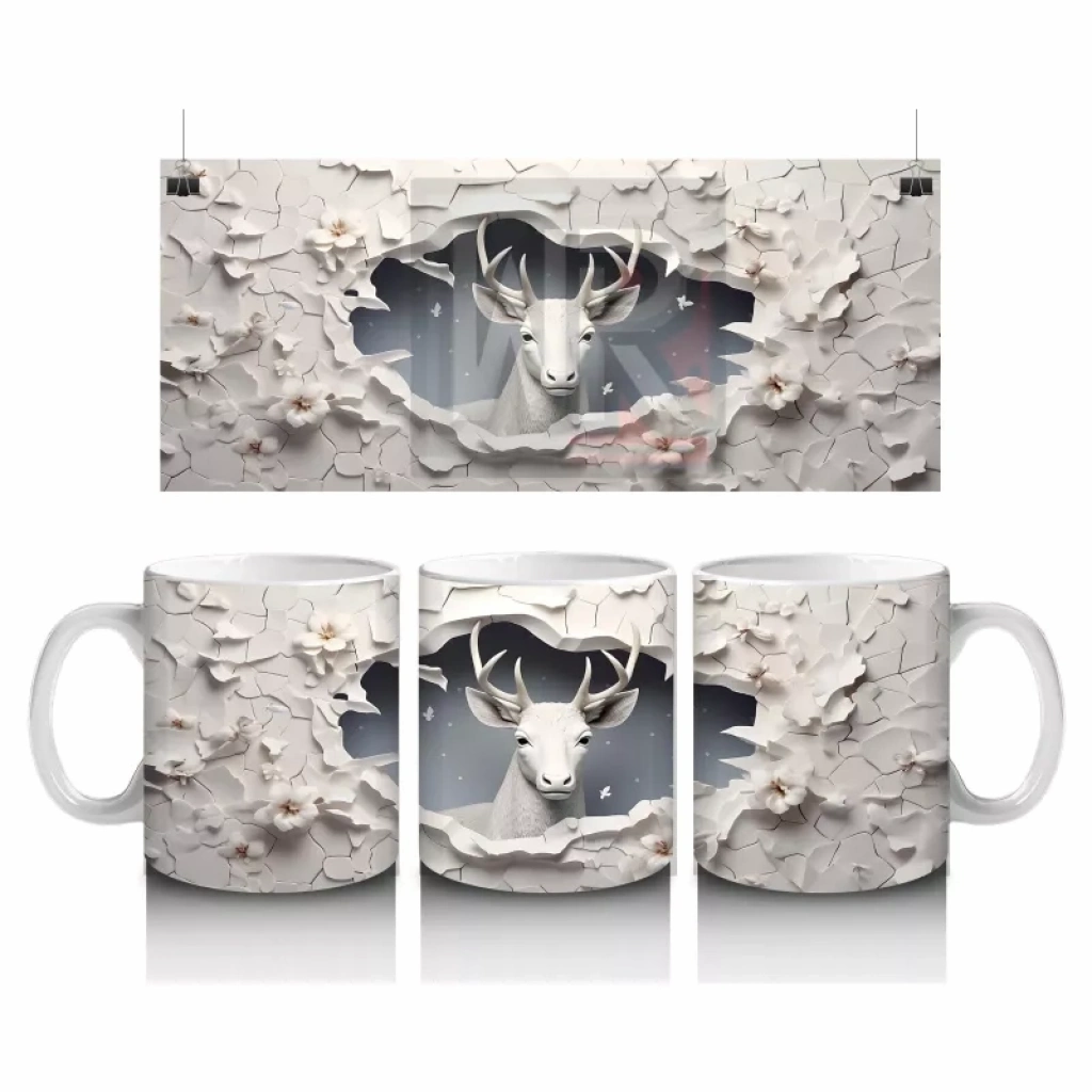 Kırık Duvar Arasında Minimal Stilde Beyaz Geyik Silueti – Baskılı Kahve Kupası
