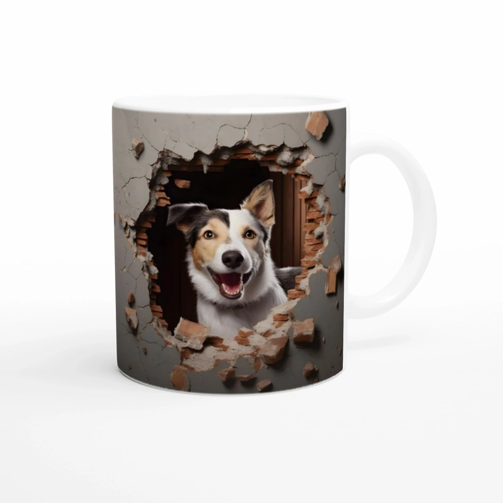 Kırık Duvar Arkasından Bakan Neşeli Köpek Kupa Bardak