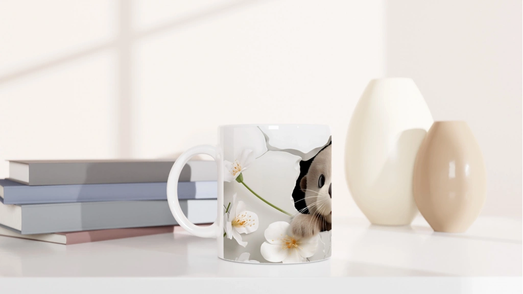 Kırık Duvarın Ardından Bakan Sevimli Su Samuru Baskılı Kupa Bardak, masum bakışları ve zarif çiçek detaylarıyla iç ısıtan bir atmosfer yaratıyor. Su samuru baskılı kupa, doğa sevgisini ve şirinliği bir arada sunmak isteyenler için ideal bir tercih.