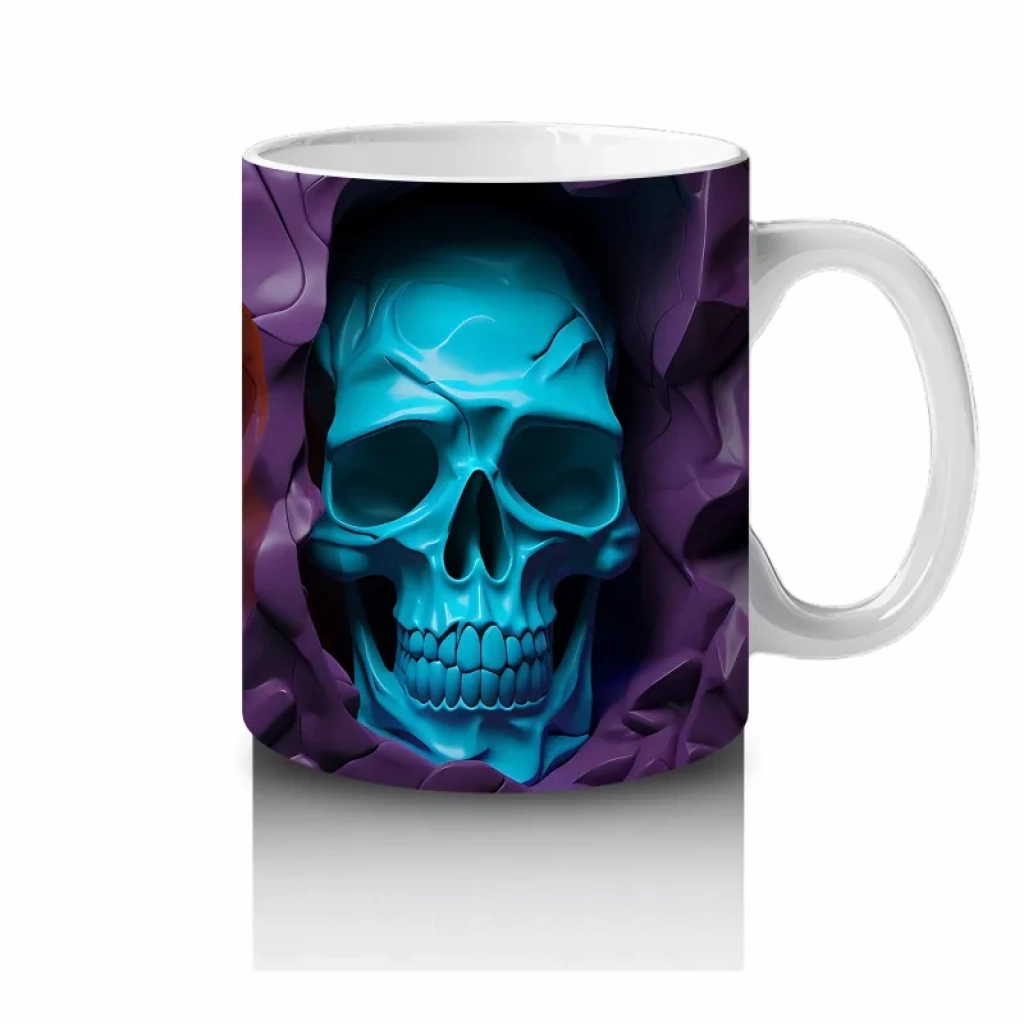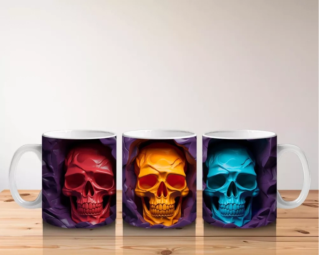 Kırmızı, Altın ve Mavi Kafatası Üçlüsü – Hediyelik Kahve Kupası Üç farklı renk tonunda tasarlanmış kafatası figürleriyle dikkat çeken bu baskılı kupa, koleksiyonluk bir Cadılar Bayramı ürünüdür. Parlak ve tematik bir hediyelik kahve kupası isteyenlere hitap eder.
