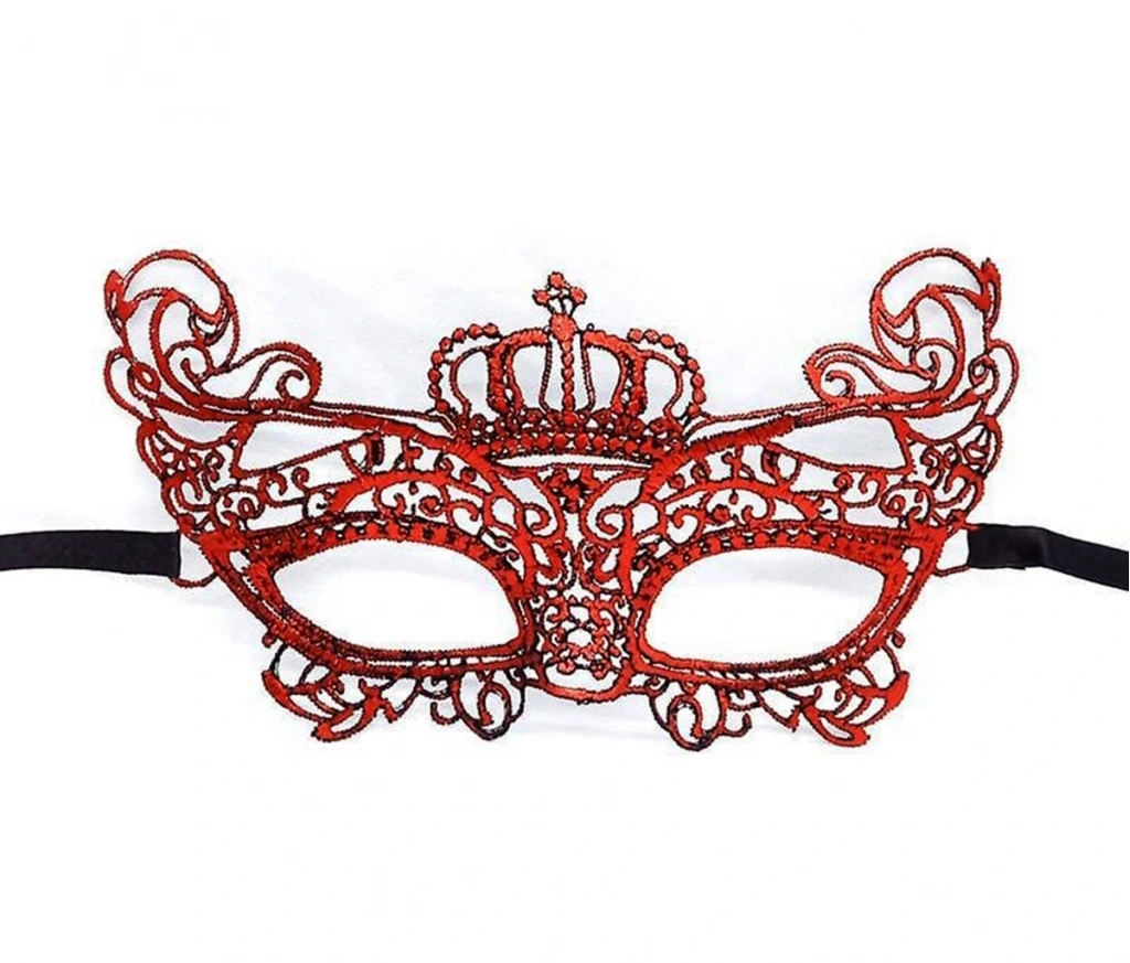Kırmızı Renk Dantel Örgü İşlemeli Parti Maskesi Model 2