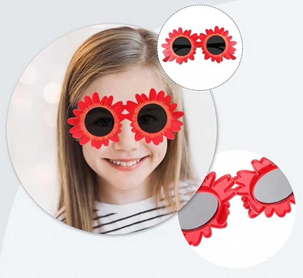 Kırmızı Renk Papatya Şekilli Parti Gözlüğü 18x10 cm, doğum günü partileri, bahar partileri ve diğer eğlenceli kutlamalar için mükemmel bir aksesuar. Gözlükler yumuşak plastikten yapılmıştır ve her yaştan insan için uygundur. Papatya şeklindeki çerçeve, her kıyafete sevimli ve şenlikli bir hava katacaktır.