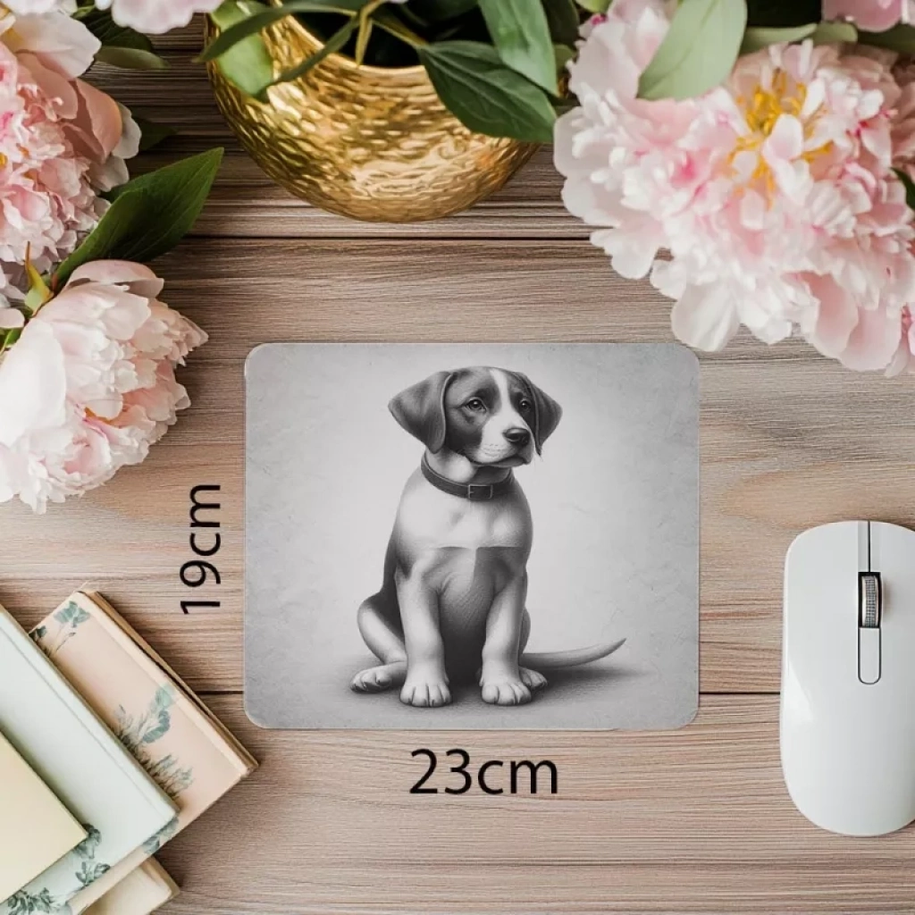 Klasik tarz oturan köpek mouse pad ile masanda nostaljik şıklık! Zarif çizimler ve rahat yüzeyiyle oyun ve çalışma keyfini artır.