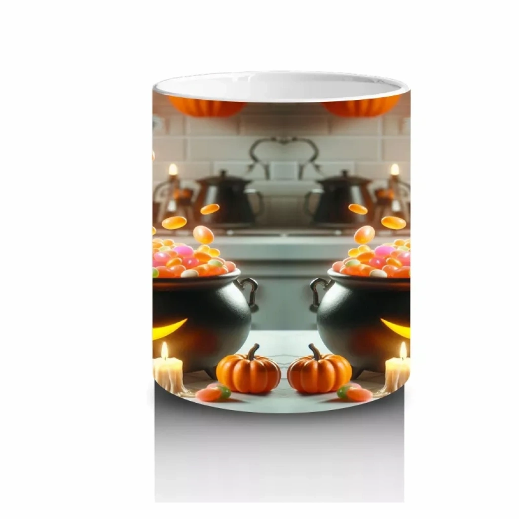 Kupa yüzeyine işlenen Cadılar Bayramı temalı görseller, yüksek kalite süblimasyon baskı sayesinde uzun süre canlı kalır. Ancak kimyasal deterjanlardan kaynaklanabilecek solmaları önlemek için elde yıkama önerilir.