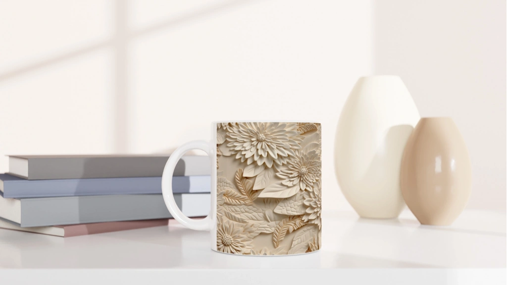 Krem Çiçek Dokulu Kupa Bardak, doğal ve sofistike tasarımıyla hem klasik hem modern dekorlara uyum sağlar.
