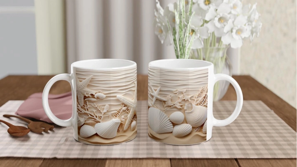 Yumuşak geçişli dokulara sahip bu şık kupa bardak, sahil esintisini her an yanınızda taşımanızı sağlar; estetik ve huzuru bir araya getirir.