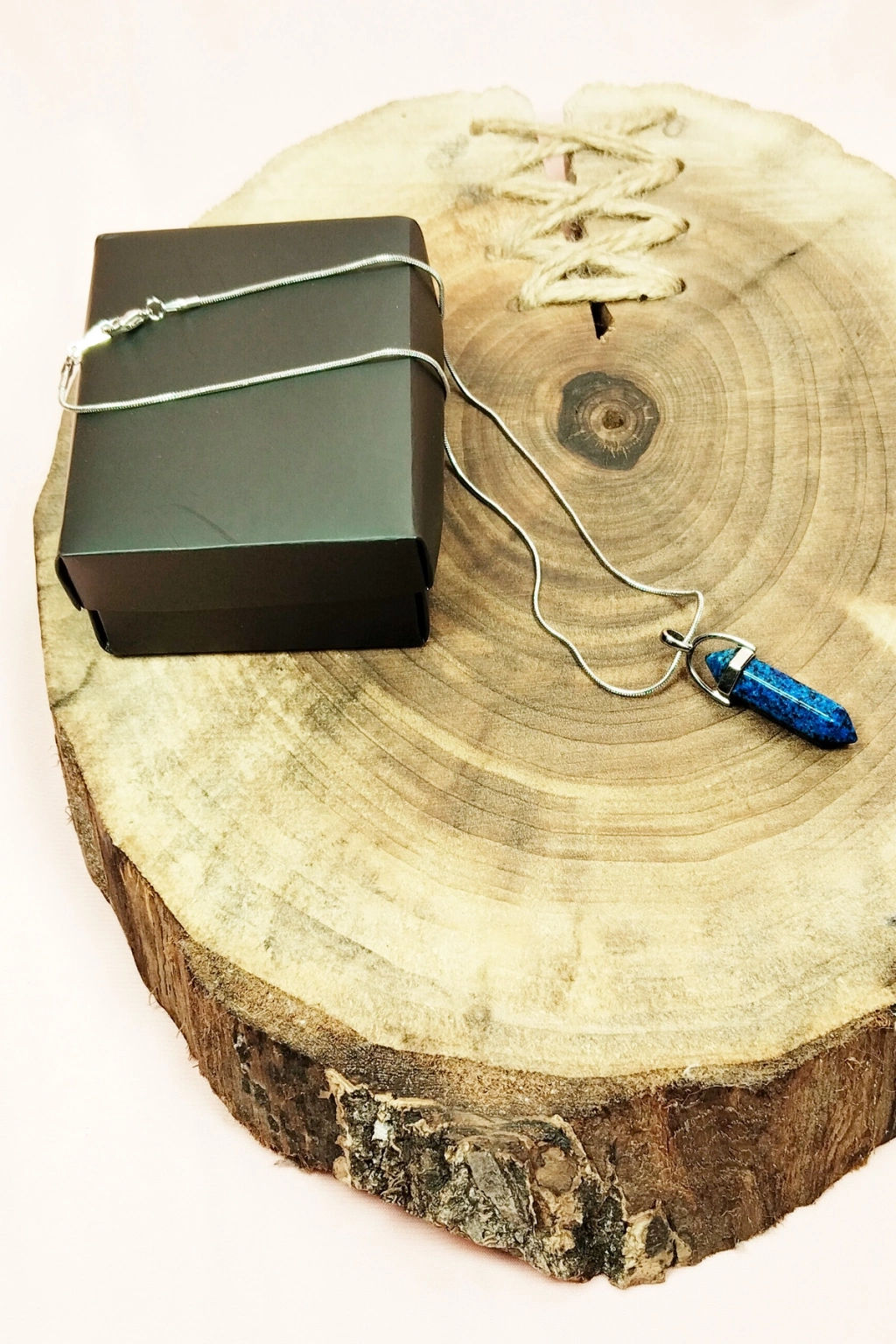 Labradorit Doğal Taşı Zincirli El Yapımı Tasarımlı Kolye Uç: 3,5 cm Zincir: 20 cm Kutulu