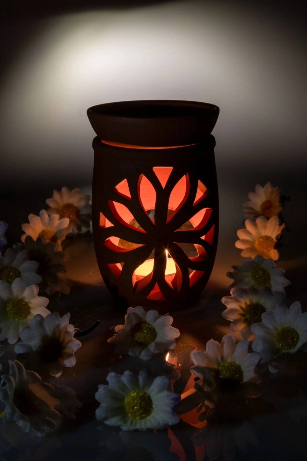 Aromaterapi yağlarıyla kullanılır, altına mum konur, üstüne isteğinize göre aromaterapi yağları,adaçayı veya tütsü koyabilirsiniz üst kısım kasesidir .