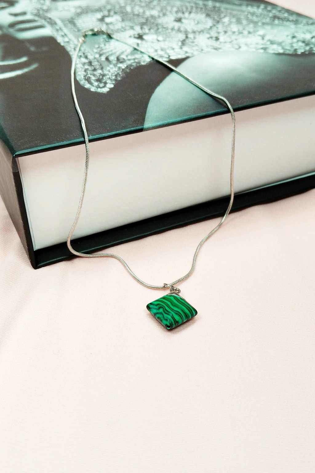 Malakit Doğal Taşı Zincirli El Yapımı Kolye Uç: 1,5 cm Zincir: 20 cm Kutulu