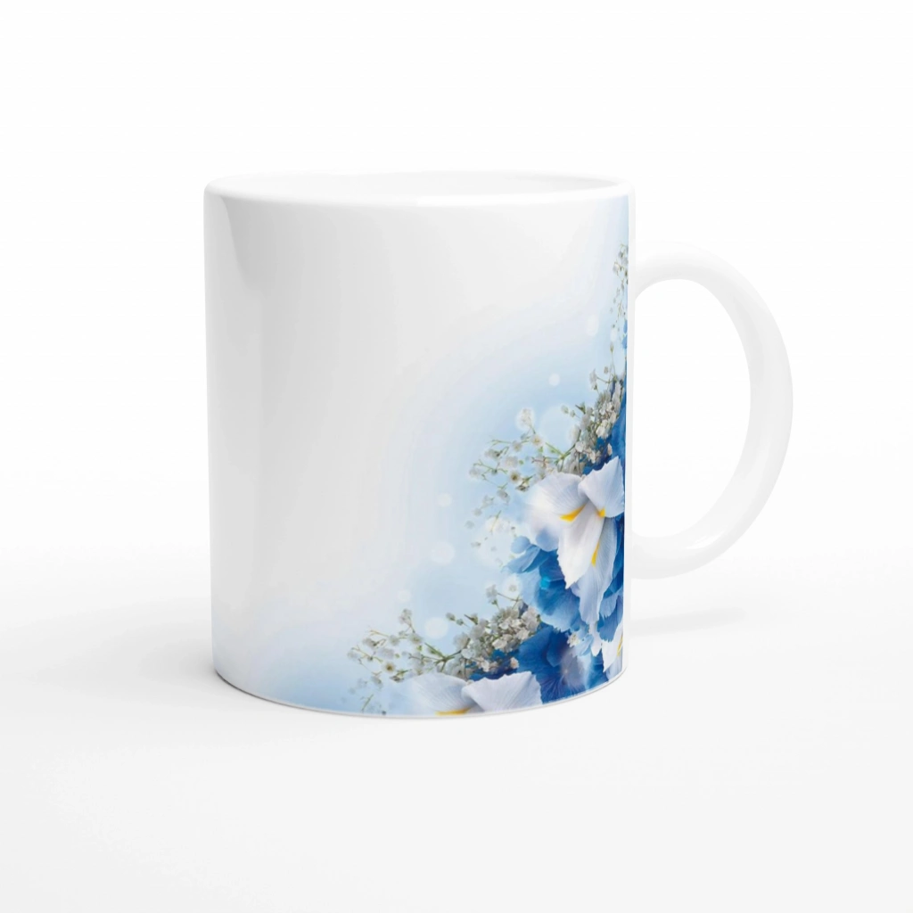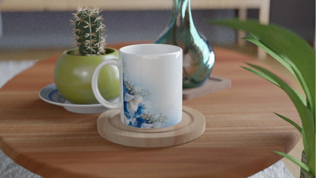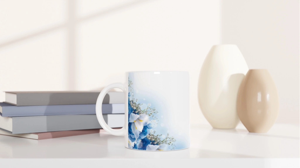 Mavi Beyaz Zarif Çiçek Desenli Kupa Bardak, beyaz fon üzerine yumuşak geçişli mavi tonları ve narin çiçek detaylarıyla öne çıkar. Günün her anında dinginlik ve şıklık sunan bu model, estetik duruşuyla hediye olarak da tercih edilebilir.