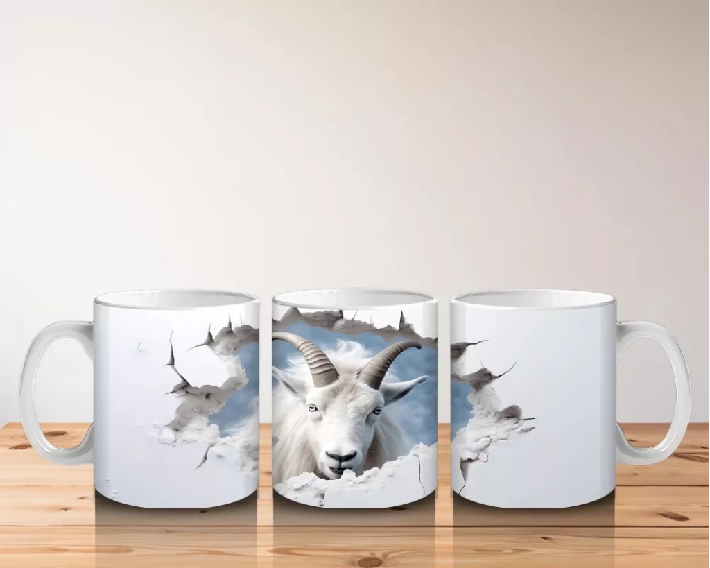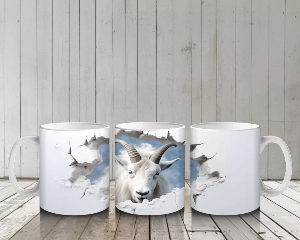 Mavi Gökyüzü Arka Planlı Çatlak Zeminden Bakan Dağ Keçisi – Baskılı Kahve Kupası