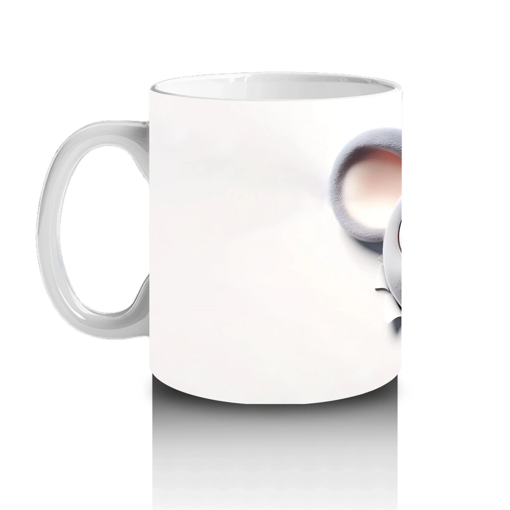 Mavi Gözlü Gülümseyen Fare Maskot – Baskılı Kahve Kupası