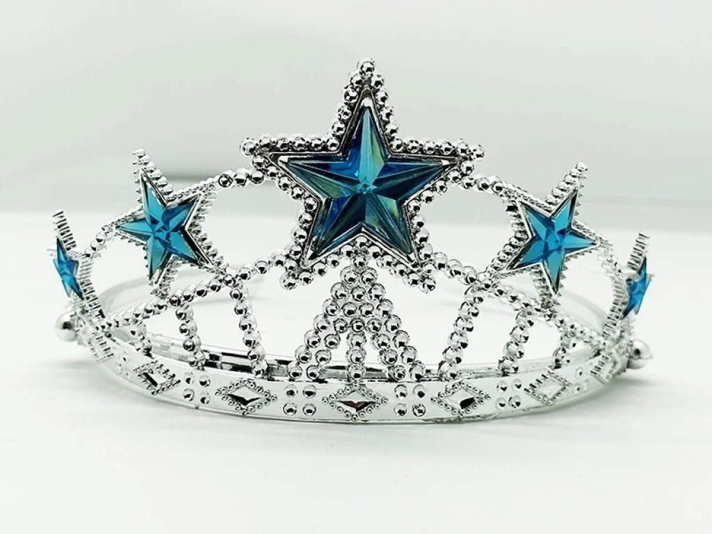 Mavi Yıldız Taşlı Plastik Kraliçe Prenses Elsa Tacı Çocuk Boy