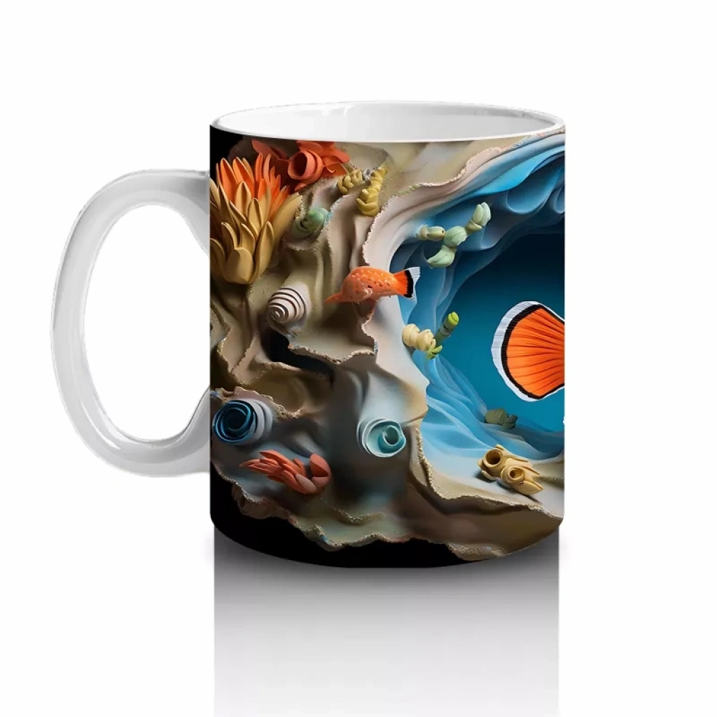 Canlı renkleriyle mercan resiflerinde süzülen palyaço balığı, bu kupa tasarımını enerjik ve eğlenceli hale getiriyor. Deniz altı dünyasının güzelliğini masanıza taşımak için ideal bir parça.