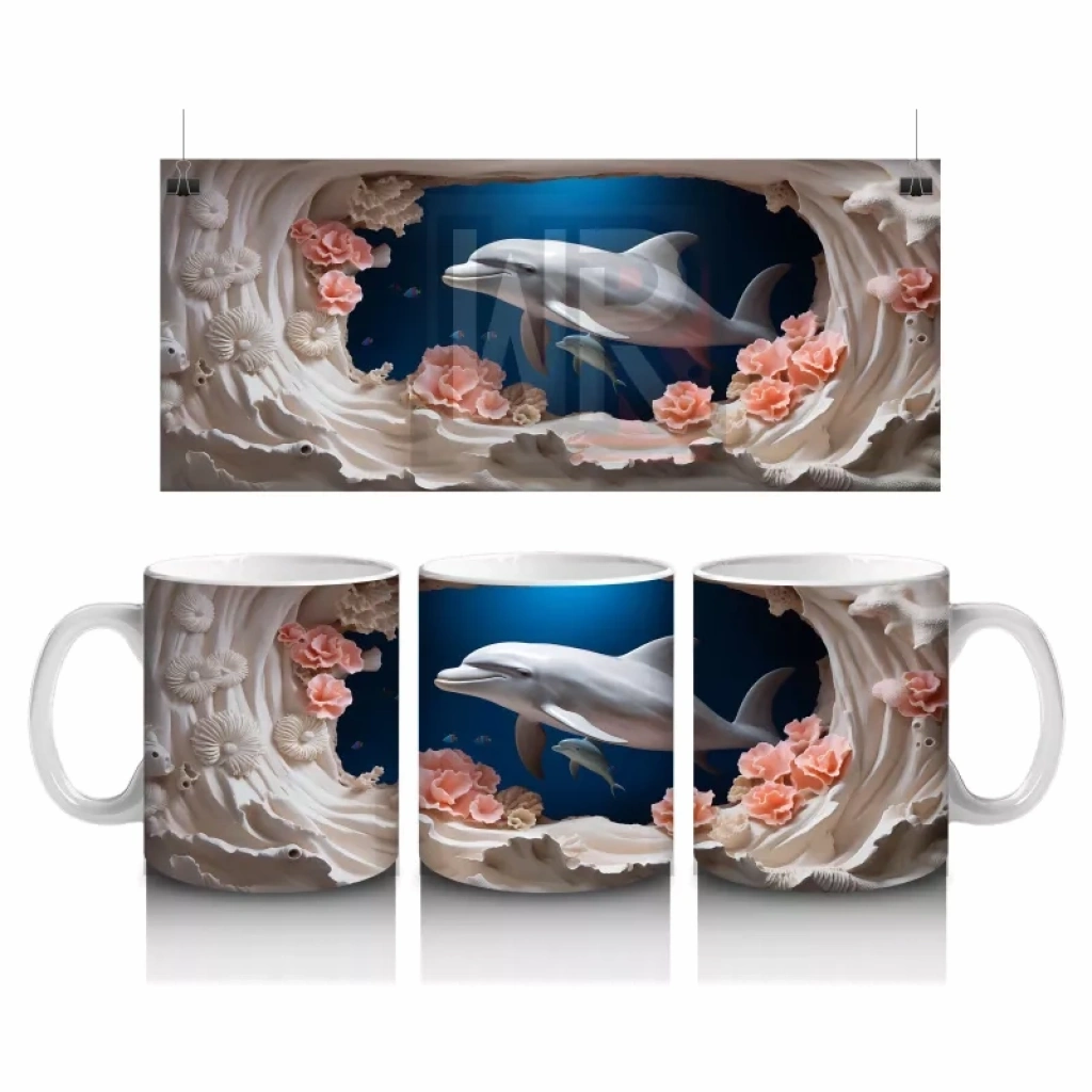 Renkli mercanlar arasında zarafetle süzülen bu yunus figürü, deniz altının huzur verici güzelliğini yansıtıyor. Doğayı ve deniz yaşamını sevenler için ferahlatıcı bir kupa seçeneği.