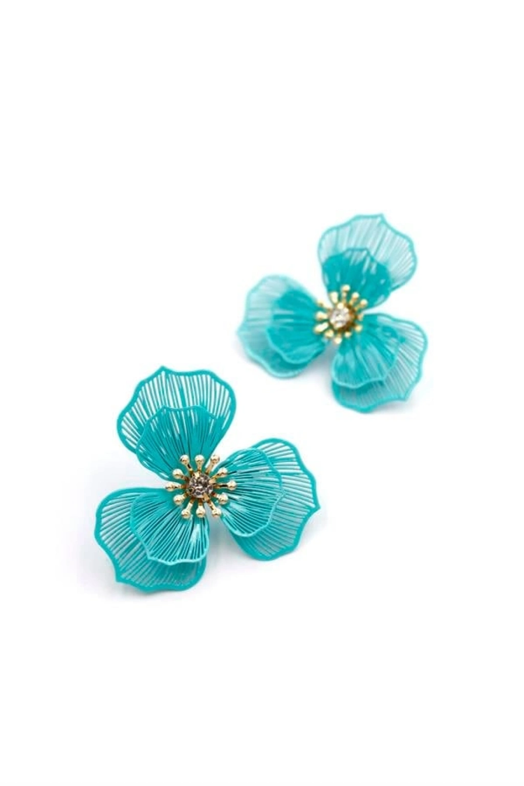 Metal Çiçek Küpe - Turkuaz