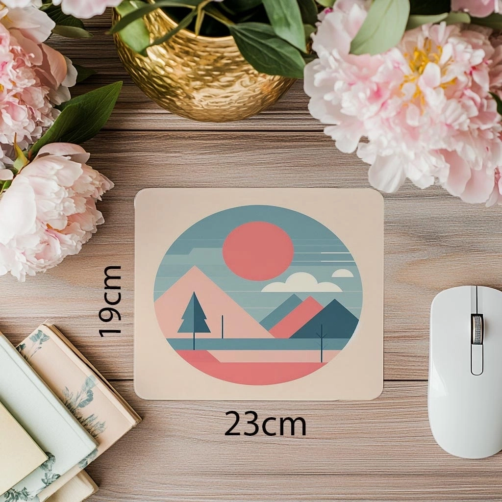 Minimalist çizgilerle oluşturulmuş bu peyzaj kompozisyonlu mouse pad, doğanın huzurunu modern tasarımla buluşturur. Sade dağ, güneş ve arazi formlarıyla masaüstünüze sakin ve estetik bir atmosfer kazandırır.