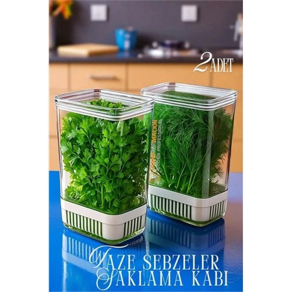 Yeşillik Saklama Kabı - Taze Yeşillik İçin - Soğan Maydanoz vb Yeşillik Saklama 2 Lİ set