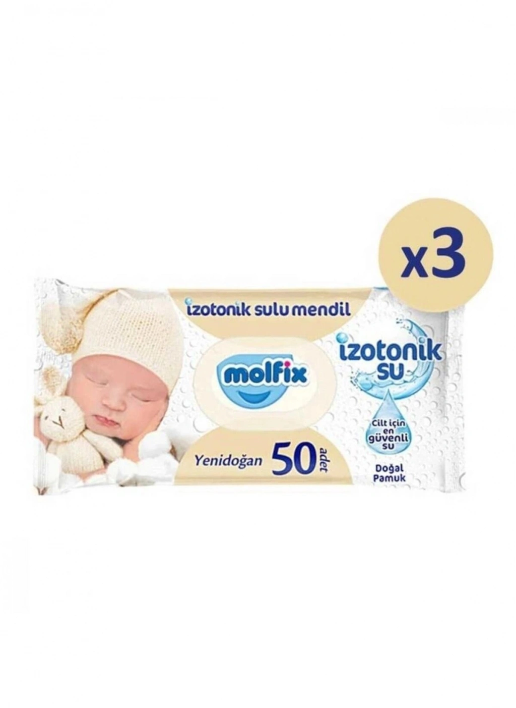 Molfix Yenidoğan İzotonik Sulu Doğal Pamuk Islak Havlu Mendil 3'Lü 150 Yaprak