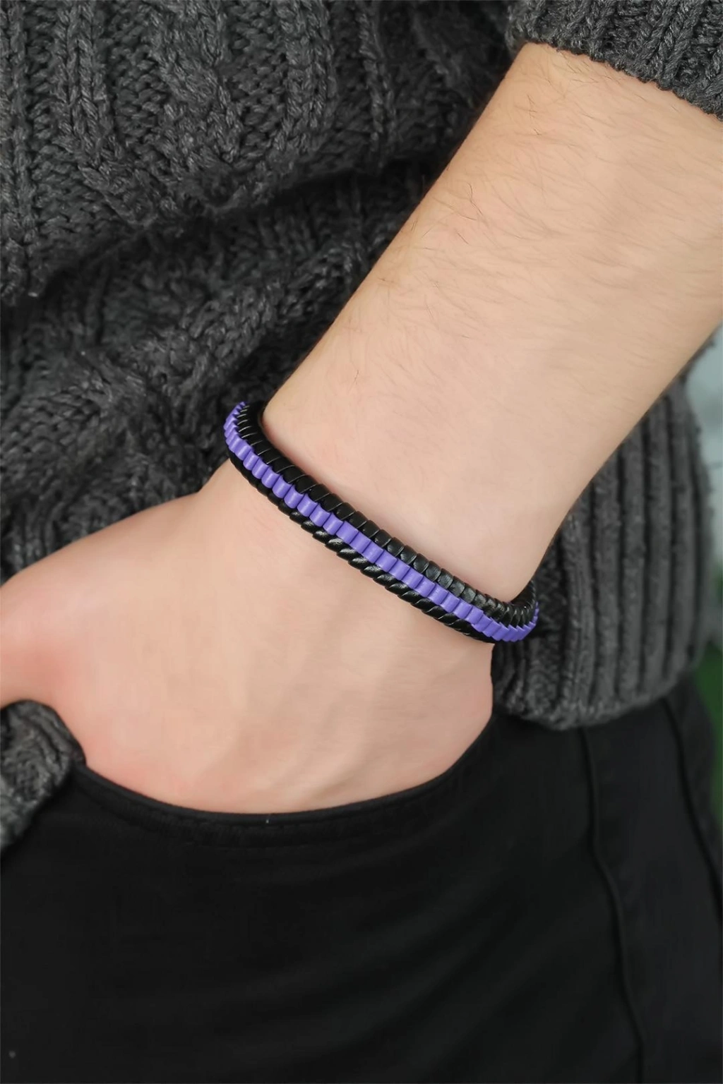 Havalı şıklığı Mor Deri Erkek Bileklik ile yakalayın.