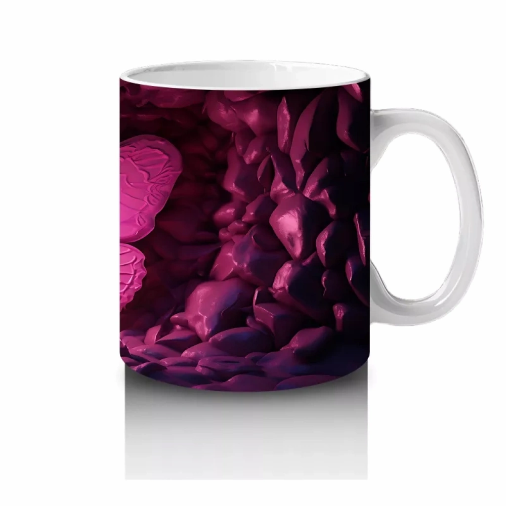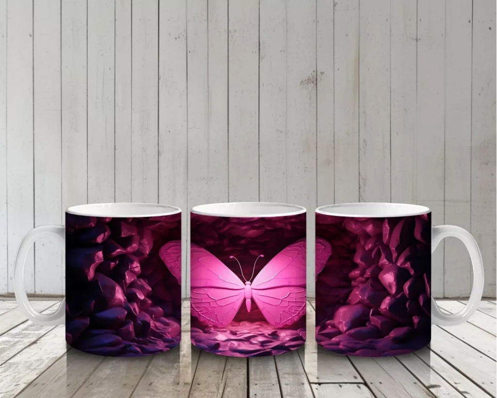Mor Işıklarla Aydınlatılmış Pembe Kelebek – Baskılı Kahve Kupası