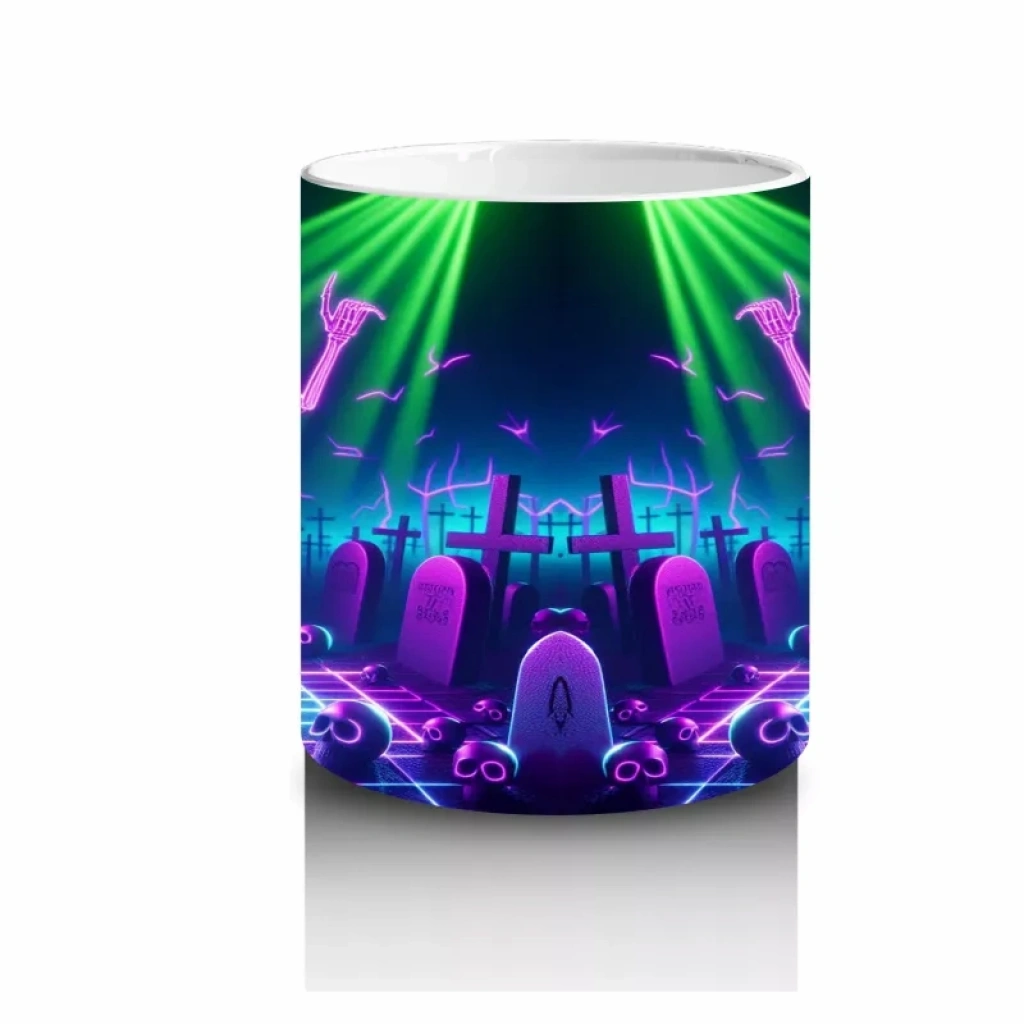 Neon Işıklarla Aydınlatılmış Dans Eden Canavar Figürlü Cadılar Bayramı Baskılı KupaNeon ışıklarla aydınlatılmış dans eden canavar figürüyle hazırlanan bu kupa, Halloween kutlamalarınıza enerjik bir dokunuş yapar.