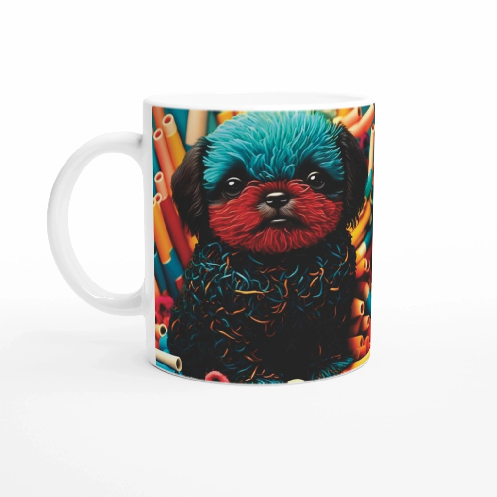Enerjik, dikkat çekici ve bol renkli bir kupa ile tanışın! Bu neon tonlarla bezenmiş sevimli köpek tasarımı, sıradan kupaların ötesine geçiyor.