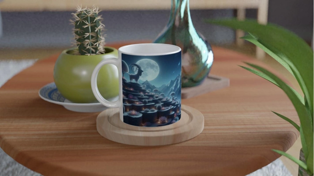 Oğlak Burcu Baskılı Kahve Kupası - Ay ışığında Zodyak Bahçesi Vs1