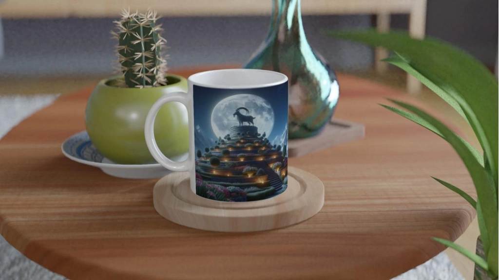 Oğlak Burcu Baskılı Kahve Kupası - Ay ışığında Zodyak Bahçesi Vs3