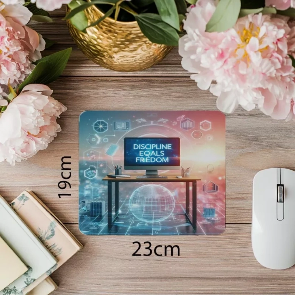 Freedom sloganlı parlak yüzeyli mousepad ile çalışma alanınıza özgürlük hissi katın. Kaymaz taban ve pürüzsüz yüzey, uzun süreli konfor ve kontrol sağlar.