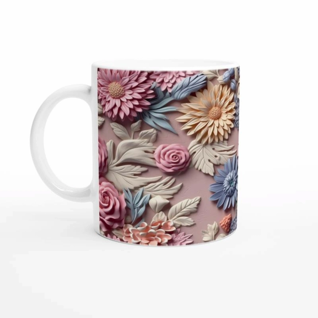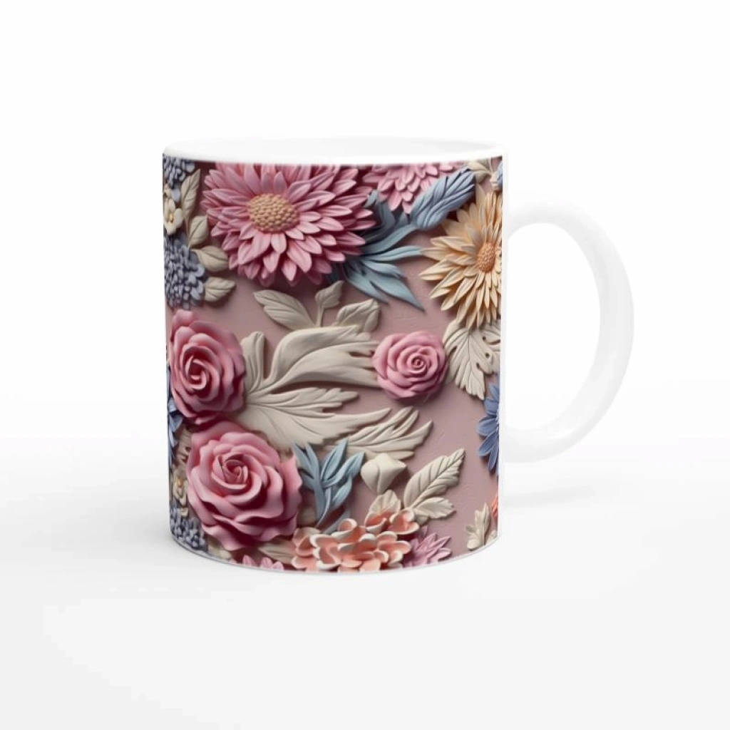 Pastel Bahar Çiçekleri Desenli Kupa Bardak, kabartmalı çiçek ve yaprak detaylarıyla zenginleştirilmiş, pastel tonların ahengiyle tasarlanmış zarif bir modeldir. İçeriği kadar görselliği de güçlü olan bu kupa, sabah kahvelerine veya hediye seçeneklerine nostaljik bir bahar havası katar.