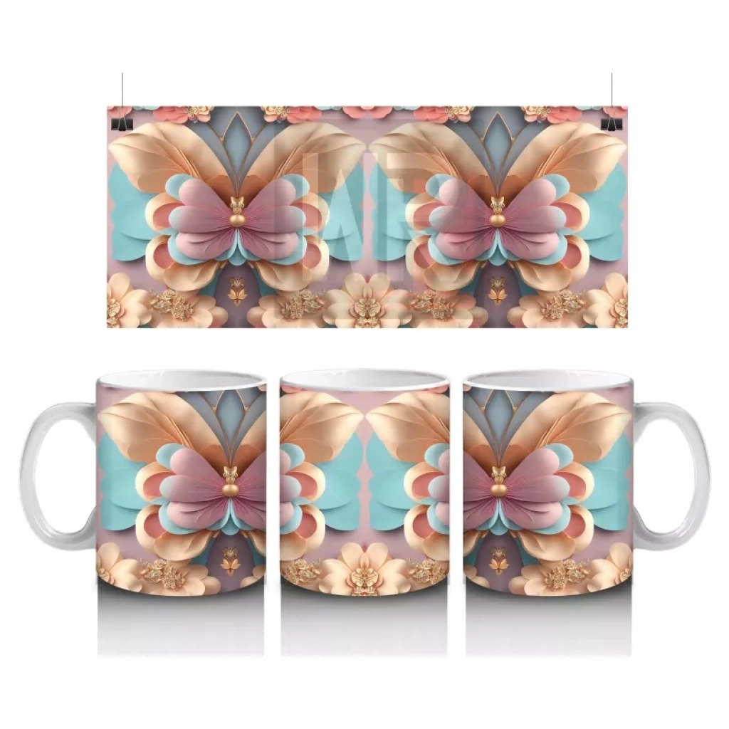 Pastel Renkli İkiz Kelebekler Deseni – Baskılı Kahve Kupası